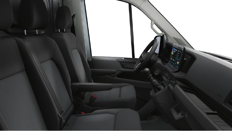 - Sitze im Fahrerhaus: Beifahrerdoppelsitz mit Stau-/Ablagefach und Rückenlehne zum Ablagetisch klappbar